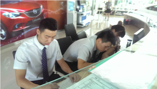 在这样一个特殊的时刻,欣达汽贸的员工并没有只顾完成自己的工作,总是想着要帮周围的同事分担一些。9月14日下午,欣达销售前台冯花花为准备明检资料忙得焦头烂额,两位销售顾问在完成自己的工作后主动帮助冯花花一起整理资料,在三人的共同努力下明检资料很快就整理完毕了。像这样同事之间互帮互助的场景在欣达随处可见,大家都在为明检的顺利通过而一起努力。