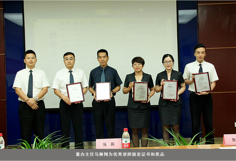 董办主任马琳翔为表彰会作精彩致辞,马主任表示,育教中心成立以来,在育教中心全体员工与兼职讲师们的共同努力与配合下,为集团培养了大批优秀人才,集团将一如既往对育教中心以及兼职讲师寄予希望和期待。马主任强调,作为讲师要为人师表,需立德,立言,进而立行,为学员做好引路人,传递企业正确的价值观。