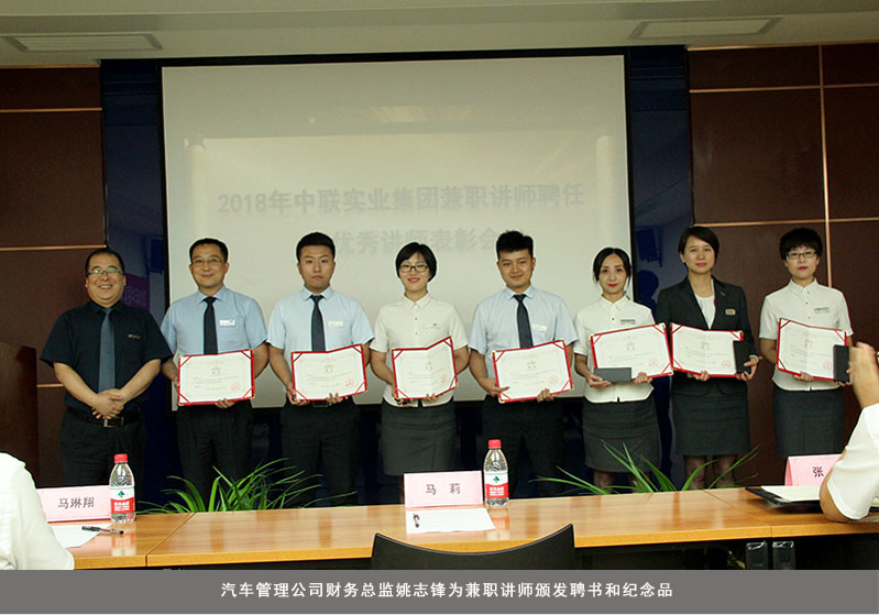 2018年7月18日下午14:00,来自集团及各公司的29位兼职讲师齐聚陕西福迪汽车贸易有限公司培训室,共同参加2018年中联实业集团兼职讲师聘任暨优秀讲师表彰会。集团公司副总经理马莉、董办主任马琳翔等领导应邀出席本次表彰会。