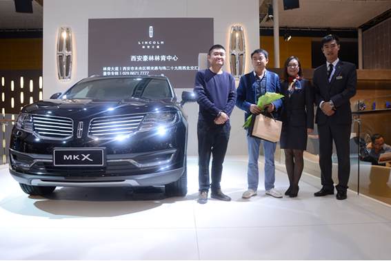 位于绿地笔克一号馆的林肯展台简洁大气,外观设计无一不展现林肯品牌文化。本次车展,林肯共展出MKC、MKZ、MKX三款车型,吸引了众多购车人士的眼球。10月1日上午11时许,著名相声演员苗阜莅临林肯展区参观选购,苗阜对MKC情有独钟,林肯首席顾问全面、详细介绍了MKC的性能及优势,很多观众驻足倾听,与苗阜老师互动合影。苗阜老师亲自为现场第一位购车的车主黄先生举行了交车仪式,并为车主赠送了特殊的礼物。现场气氛热烈,很多客户前来了解选购。