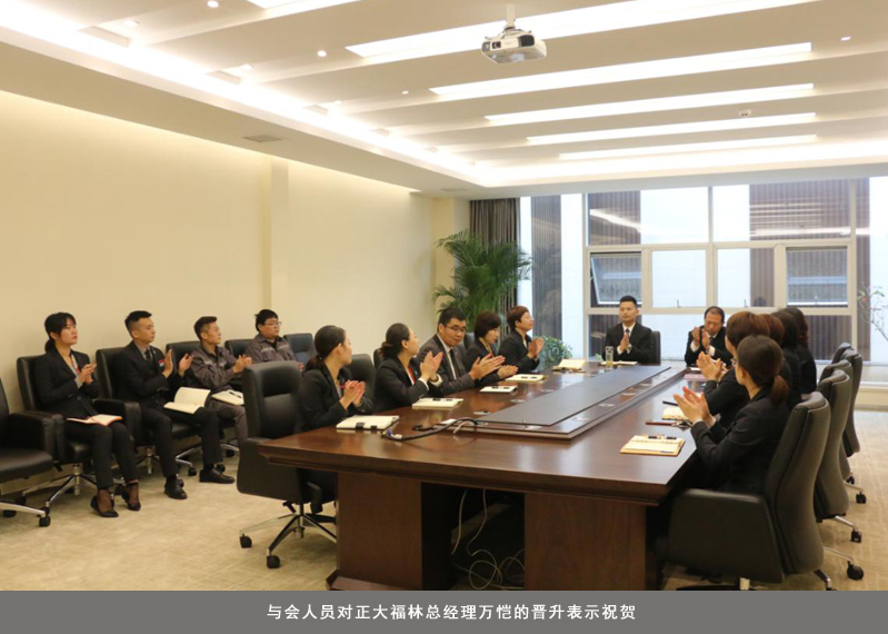 陕西福迪各与会主管级(含)以上管理人员纷纷为姚小刚执行总经理的晋升表示祝贺,并坚信在集团、董事长领导下,在姚总的带领下,在各级团队的通力配合下,充分发挥部门职能,履行岗位职责,发扬主人翁精神,让陕西福迪团队真正成为一支务实高效、执行有力、团结进取、积极向上、攻坚克难的优秀团队,为集团创造价值,助力集团长远健康发展。