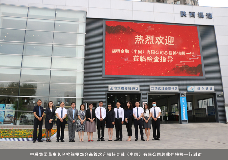 2020年9月1日下午,福特金融(中国)有限公司总裁孙轶娜携销售总监李伟芬、福特金融西大区经理吴文雯、林肯金融大区经理李蔚、林肯金融区域经理毕高熇、福特金融区域经理黄冬梅一行莅临陕西中联实业集团指导工作。中联集团董事长马栓银携集团部分高管诚挚欢迎孙总裁一行的到访,并陪同参观了陕西福迪汽车贸易有限公司与陕西豪林汽车销售有限公司。