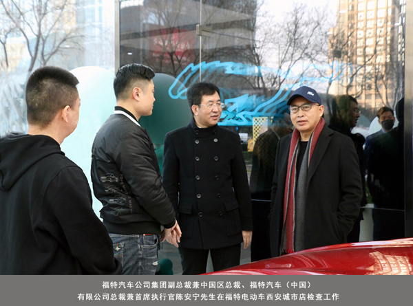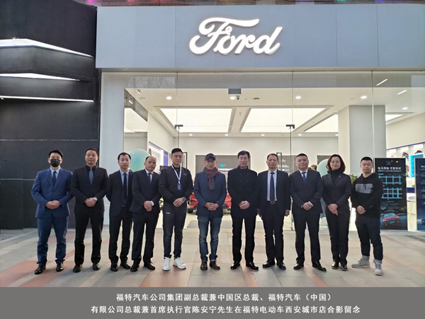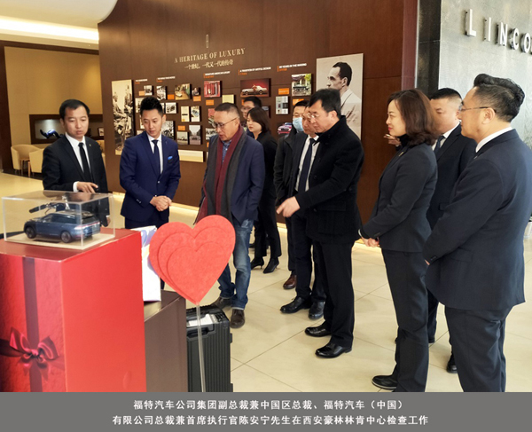 2022年2月19-20日,福特汽车公司集团副总裁兼中国区总裁、福特汽车(中国)有限公司总裁兼首席执行官陈安宁先生一行莅临陕西中联实业集团旗下福特电动车西安城市店、长安福特陕西福迪公司、西安豪林林肯中心检查工作。中联集团董事长马栓银先生携部分高管热情欢迎并诚挚感谢陈安宁总裁一行莅临。