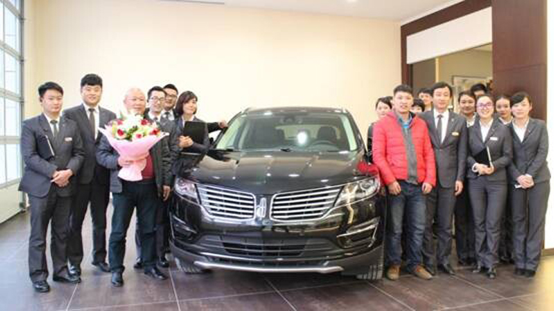 黄老先生在1月3日豪林林肯中心尚未开业之际,便已经对自己钟情已久的林肯MKC 尊耀版 四驱雅绅黑下了定单,但由于前期公司车辆资源尚不充足,黄老先生尽早提车的愿望只能押后些许。在此期间,黄老先生多次到店询问车辆的配置、功能,对于展厅的展示车辆也是多次与咨询顾问交谈了解。2月2日,黄老先生开着新车回福建过年的愿望终于成真。一大早,黄老先生便与家人来到展厅,专属首席顾问师张晓娜全程陪同,协助客户办理各种提车手续。中午十一时左右,交车手续办理完毕,首席顾问师邀请黄老先生一家至交车套房内为客户举行交车仪式,由销售总监与黄老先生共同为其爱车揭幕,为客户赠送交车礼品及鲜花,与客户合影留念。鉴赏工程师刘泽宇及服务工程师张楠对车辆为客户进行了全面、细致的讲解,耐心解答了客户的疑问,客户关系中心客服专员岳希为客户做完面访记录后全体员工恭贺黄老先生喜得爱车并目送客户离店。