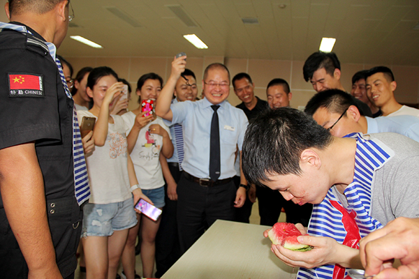 而接力赛是部门团队协作的真实写照。职能战队各选手纯朴耿直,把西瓜吃的干干净净,碳酸饮料也喝的一滴不剩,扎扎实实完成了比赛,耗时4分14秒;销售战队吸取经验,队员互相配合,在碳酸饮料上下功夫,仅用2分26秒完成接力赛;最后出场的售后战队以迅雷不及掩耳之势,仅用54秒结束战斗,吃瓜大赛几乎变成用瓜洗脸大赛,活动在现场尖叫声和掌声中愉快的结束了。在后续的三伏天里,福迪汽贸店总白云龙将携各职能部门持续为一线员工送清凉到工作岗位,实实在在地把集团公司的人文关怀落到实处。