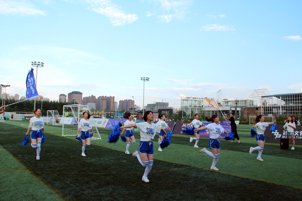 嘉宾团及观战团也毫不逊色,他们热情高涨,积极为队员们摇旗呐喊、加油助威,不断响起喝彩声、尖叫声、欢呼声。足球宝贝们用青春洋溢、活力四射的舞姿为球场上的英雄们鼓舞士气。她们跳出了活力和力量,这正是中联集团健康向上和蓬勃生机的充分体现。她们是足球场上靓丽的风景线,用舞姿展示了青春与活力,舒缓了赛场的紧张气氛,为大家带来一场场精彩绝伦的视觉盛宴。