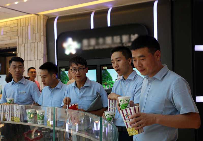 八月,天高云淡,阳光正好,微风凉爽宜人。陕西幸福汽车销售有限公司全体员工120余人,个个手拿装有电影票、套餐券、冰激凌领取券的“红包”,齐聚西安奥斯卡阳光国际影城。大家拿着红包井然有序的排队领取行政部提前准备好的冰激凌、薯片、爆米花、可乐等美味零食,各个喜笑颜开,现场有位同事笑着说道,“这么丰盛,手里都快拿不下了”,言语之间饱含喜悦与满足。