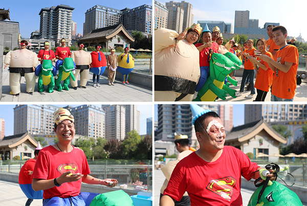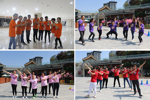 来自不同公司、不同部门的88位员工分为10组,换上不同颜色的队服后便纷纷开始找寻自己的队友,一同讨论队名、口号和团队pose,强烈的团队凝聚力和集体荣誉感也油然而生。集结完毕后,各队精彩的秀出了自己的风采,喊出了响亮的口号。