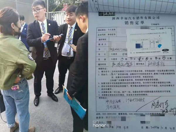 因为执着,这个瞬间值得记住 10月4日,车展已进行到第四天。虽然曲江会展中心即将闭馆,辛勤工作了一天的陕西幸福汽车销售有限公司工作人员朱伟强、赵晨辉、奥书平、张召辉仍徘徊在展馆门口等待一名客户。这名客户三天前已经来到福特展厅看过车了,虽然有购车意向但仍然犹豫不决。销售顾问在接下来的几天持续联系这名客户,并不断邀约客户再次前来进行洽谈,客户最终同意10月4日再次前往展厅看车。4日当天客户因为事情耽搁迟迟未到展厅,幸福公司工作人员耐心等耐,不断电话邀约,虽然展馆已经闭馆,但最终客户在工作人员的诚心打动下成功订车。