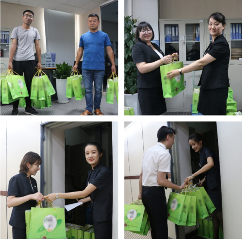 端午临仲夏,时清日复长。在端午节来临之际,集团及各公司行政部受陕西中联实业集团董事长的委托,于6月4日,为奋战在一线、辛勤忙碌的全体中联员工准备并送上浓情满满的“节日问候”。这一举动,饱含着集团对员工满满的节日关怀和深切祝福。简短的发放过程中,员工们沉浸在满满的节日祝福中,幸福的笑容挂在脸上。心如糯米,越粘越紧;情如粽叶,越煮越香。每逢传统佳节,董事长都会特地为员工送上节日福利和真诚祝福,让每一个员工感受到“中联集团”的温暖和情意,体会到“家”的温馨与幸福!一张张笑脸和一声声感谢,真诚且朴实的表达了对集团董事长的感激之情。