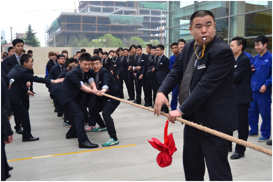 为锻炼公司员工体魄,增强员工意志力和向心力,提升大家的精神面貌,由陕西幸福汽车销售有限公司行政部组织,公司全体员工参与的陕西幸福杯拔河比赛,于2015年4月18日星期六早上8点30分,在展厅正门前拉开序幕。