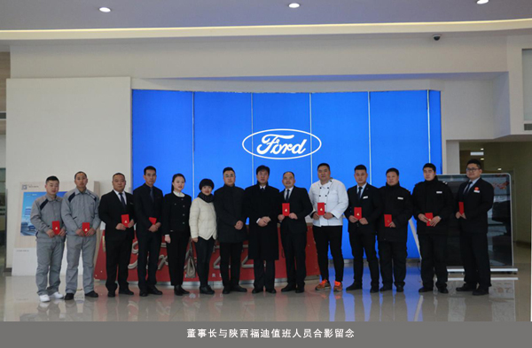 董事长携集团高管先后来到幸福公司、正大福林、陕西欣达、豪林公司和陕西福迪进行新春慰问。董事长与坚守岗位的值班人员进行亲切交谈并将满载集团的暖心问候和美好祝福的红包一一发至员工手中。董事长在慰问中说到:“在新的一年里,希望各汽车公司员工分别在总经理朱峰、总经理万恺、总经理向奥博、总经理范小伟、执行总经理姚小刚的带领下,继续坚守公司制度,传扬企业文化,立足本职岗位;再接再厉,鼓足干劲;恪尽职守,奋力拼搏;为集团发展做出应有贡献。在此,祝大家及家人新年顺意,幸福安康”。