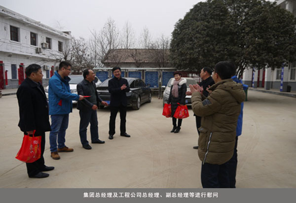 2017年1月28日农历大年初一上午,集团董事长马栓银携总经理皮俊、副总经理马莉、马晓银、徐东等领导前往集团下属各公司及各项目部,向节日当天仍坚守在一线的各位员工进行慰问,带去集团领导新春祝福和节日问候。