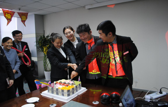 下午14点30分,参加联欢会的各位同事在会议室集合,由行政主管张娜主持,首先她向大家致以新年的问候,接着向大家宣布联欢会的流程,此次联欢会共分为三个环节,游戏接龙、切蛋糕寄语2016和抽奖环节。