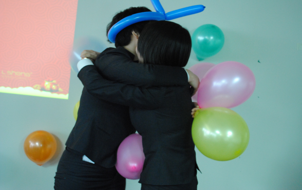 首先开始的是第一个环节游戏接龙,本环节共设置三个游戏:挤爆气球、挑战肺活量、争当麦霸,在每个游戏中每位同事都能积极参与,游戏中充满着合作与竞争,大家都争先恐后的完成游戏任务,现场好不热闹。一场场游戏过后,大家在欢笑声中渡过了2015年的最后一天。接着是切蛋糕环节,联盛传媒总经理助理朱建峰和各部门负责人一起为大家切蛋糕,祝愿在新的一年,中正和联盛会越来越好,大家怀着对2015的眷恋,憧憬着2016的新气象,许下新年的愿望,蛋糕在每个人手中传递,就像传递一份份正能量,为新年鼓劲加油。最后一个环节是抽奖环节,按照游戏环节的胜负顺序进行抽奖,小小的奖品是对每位员工新年的鼓舞。最后,每一张笑脸在一张张合影中定格,至此中正会展、联盛传媒元旦联欢会圆满结束。