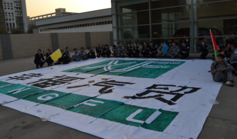 下午17:00,各组将已经画好的作品按照设计次序拼接起来,原来并不连续的图案变成了一个完整的巨大的幸福汽贸logo图案,大家都很震撼,活动中付出的时间和精力都充满了意义,大家内心无比自豪。