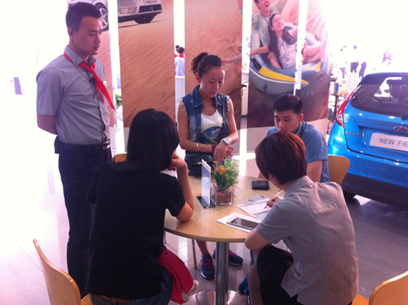 向客户介绍在4S店购买保险的好处以及陕西幸福向客户提供超值的分期付款方式等金融产品。
