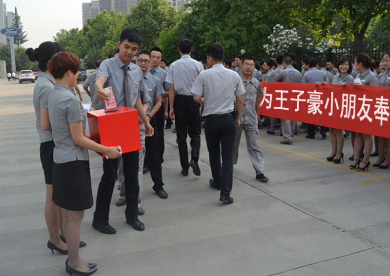 2015年6月19日上午,陕西幸福汽车销售有限公司组织全体员工在行政部邹蓉经理的组织下,进行了一场爱心募捐活动,为身患重病的王子豪小朋友奉献爱心。