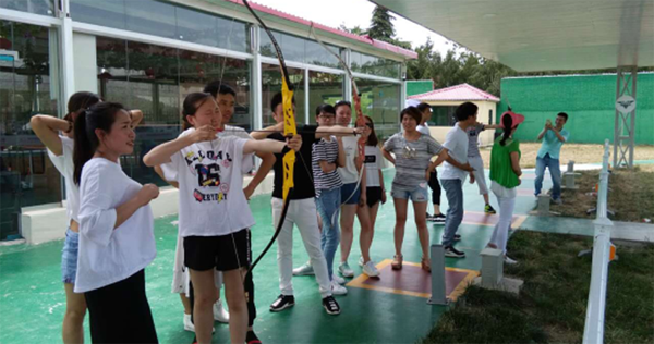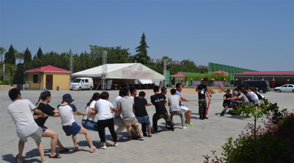 此次团建活动主要项目是队列练习、齐心同行、拔河比赛、弓箭讲解及体验、团队互动等。在队列练习时,大家头顶烈日,汗流浃背,但依旧在教练的口号声中,坚持着一个个标准的队列动作;在齐心协力项目,教练将全体人员平均分为4组,将相邻两人的腿两两相绑,之后,大家在统一的口号声中完成前行目标,并角逐出相应的名次;拔河比赛分为4组进行,比赛中,拉拉队员的加油声,参赛人员的呐喊声,胜利者的欢呼声,战败者的邀战声,在一次次激烈的角逐过后,根据比赛的结果,教练根据比赛的名次将队列进行了相应的调整,在大家热烈的掌声中,第一名的团队荣幸的站在了队列的第一排。