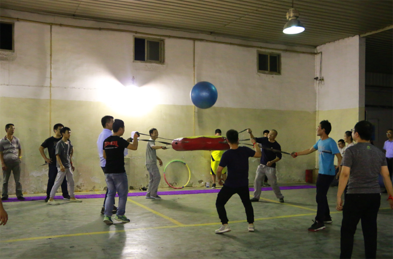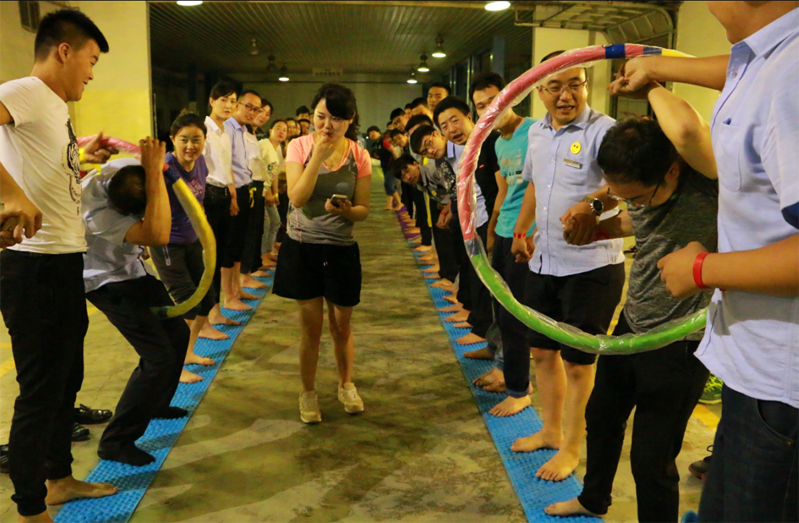 团队运动会,顾名思义,是以团队互相协作取得胜利的活动,其目的在于加强同事之间的友谊,增强企业凝聚力。本次比赛分为四个项目,分别是疯狂毛毛虫、众星捧月、痛并快乐、穿越呼啦圈。每一个项目的设计不但有趣,重点是强调了团队意识,想要获胜,团队的每个人必须担任合适的角色,互相配合。在简单分组、选队长、喊口号后,员工们摩拳擦掌,跃跃欲试,员工们嘹亮的口号声成了点燃激情的催化剂。
