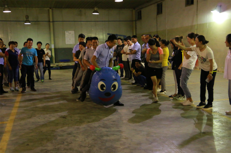 “疯狂毛毛虫”的上场,迅速抢夺在场所有参赛队员的眼球,此项比拼要求参赛选手骑在“毛毛虫”上速奔向终点,因为毛毛虫不得落地,因此参赛选手脚步迅速且一致是取得胜利的关键法宝,所有队员都在摩拳擦掌,在宣读游戏规则时大家的战斗力已经满格,讨论战术,排兵布阵,如何迅速前进,两组参赛队伍正在激烈的头脑风暴。游戏进行时,每位队员都奋力勃发的向前进,有的队伍女同事只有一名,此时五名男同事使出全力,只见女同事双脚已腾空,被架至终点;还有的队伍女同事较多,战术迅速转移,剩下两位男同事负责排头和尾部,只见毛毛虫硕大的头部努力前行。现场热闹非凡,出现了各种意想不到的状况,让现场的每位参赛者在感受团队气氛的同时乐趣横生!