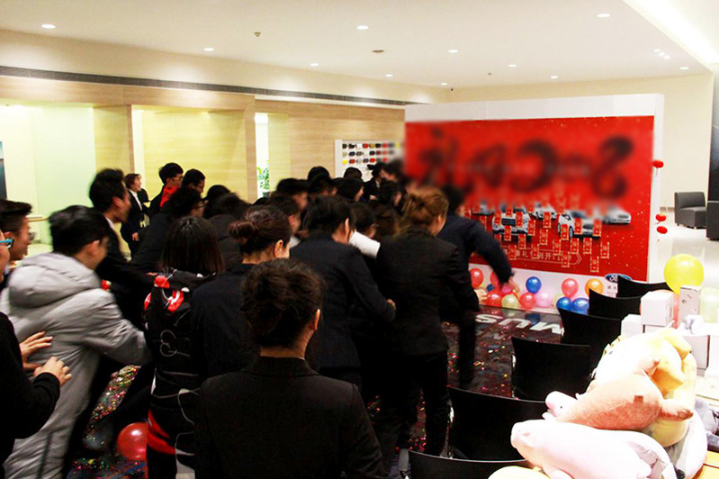 接下来是大家期待的游戏互动环节。在动感的DJ音乐和阵阵尖叫声中,“击鼓传花”开始了。交车大红花在空中快速传递,“幸运”的同事接受各种挑战。“传话”游戏更是有趣,大家戴着高分贝音乐的耳机,将锦囊里的内容依次向后传递: “什么?我听不见!”“啊?去哪儿?”“皇上?”各种搞怪对话引来现场阵阵笑声。抢凳子游戏也被销售部同事玩出了新高度,销魂的舞步引来阵阵尖叫,现场气氛异常热烈,高潮迭起。