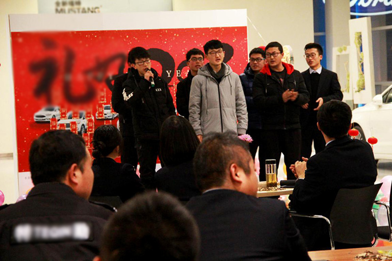 本次联欢会共有三部分,分别是节目表演、游戏互动、生日祝福。首先进行的是员工的精彩表演,销售顾问姚剑与试驾专员黄超宇的歌曲合唱《我的好兄弟》振奋激昂,售后服务部的大合唱《朋友》唱出了同事之谊,财务“一枝花”的小美女宋旭薇的《姐姐妹妹站起来》欢快活泼,台下的叫好声此起彼伏。