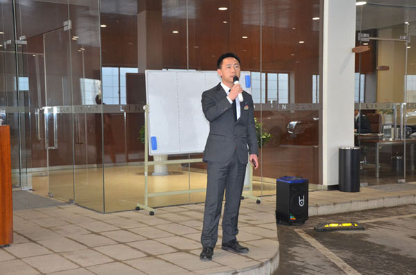 下午17:00,运动会正式开始,豪林林肯店总经理范小伟因公出差不能亲临活动现场,特委托售后服务总监刘学阳坐镇,为本次活动致开幕词,并提前祝愿各位参赛选手赛出风采,赛出水平。企化部部长刘丹作为本次运动会的主持人也为大家送上了诚挚的祝福,愿大家在活动中增进友谊,合作共赢。