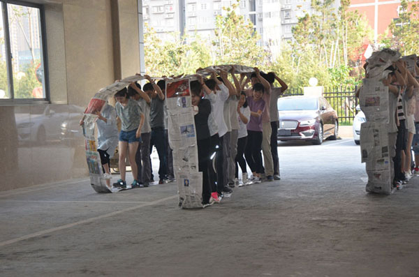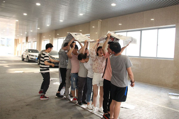 夕阳渐渐西下,活动现场热情却越显高涨。“下饺子”比赛中,大家丝毫不敢懈怠,使尽浑身解数,玩出了商战的感觉,每一跳都决定了小组的排名。现场的加油声、欢呼声也随他们的跳跃而越来越响。