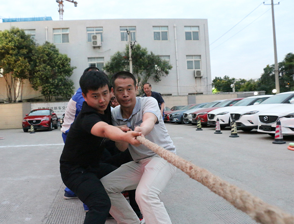 精彩的比赛一波接一波,男子/女子拔河比赛让大家大饱眼福,欣达汽贸执行总经理武寿斌亲自担当拔河比赛的裁判,在武总的带动下,啦啦队的加油声、呐喊声此起彼伏,参赛队员们士气高涨,统一呐喊“一二、一二、一二……”现场气氛异常激烈,队员们拼尽全力、奋勇争先,展现了团队勇于拼搏的精神面貌。