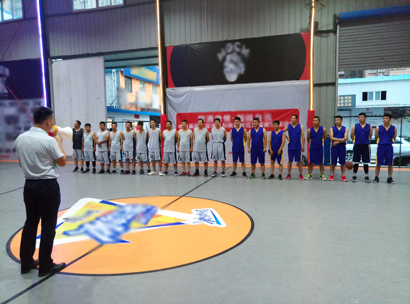 对阵双方非常重视此次比赛,赛前,他们精心挑选队员,充分利用下班时间加紧训练。经过紧锣密鼓的训练和准备,6月15日晚19:00,期待已久的篮球联谊赛正式拉开帷幕。集团公司企化部向大家阐明了本次活动的目的和意义,欣达汽贸副总经理助理张伟作赛前讲话:“希望全体参赛队员发扬‘友谊第一、比赛第二’的竞技精神,赛出风格,赛出水平,预祝比赛圆满成功!”随后,工程项目经理杨昊辉作为裁判代表向参赛队员讲解比赛规则。
